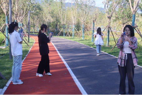 随着出发指示的发出,比赛正式开始。同学们手持无线电设备,展开对目标信号源的搜索。他们一边奔跑,一边调整测向机的角度,仔细聆听耳机中传来的微弱信号。当找到信号源时,他们迅速前往打卡记录下自己的成绩,随即又立即开始寻找下一个信号源。整个公园中,同学们奔跑、探索、尝试的身影随处可见。比赛接近尾声,同学们陆续完成多个点位的测向任务,顺利回到终点打印成绩条。