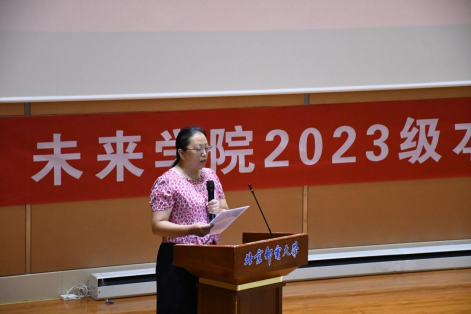 2023年9月6日上午9:00,未来学院2023级本科生开学典礼于沙河校区学生活动中心301报告厅隆重举行。北京邮电大学副校长、未来学院院长孙洪祥,教务处处长卞佳丽、党委学生工作部副部长陈炜、研究生院副院长刘冬、信息与通信工程学院副院长郭彩丽、电子工程学院副院长魏翼飞、网络空间安全学院副院长彭海朋、理学院副院长李海红、马克思主义学院副院长齐英艳、集成电路学院副处级组织员陆星琳、未来学院常务副院长顾仁涛、未来学院副院长喻鹏以及未来学院思政导师代表、学业导师代表出席典礼,未来学院2023级全体本科生参加。典礼由未来学院常务副院长顾仁涛主持。