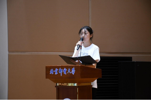 随后,王迎嘉同学作为新生代表发言。她首先表达了对父母和学校的感恩之情,而后号召元班新学子,将个人梦融入强国科技梦,加倍努力学习,立志成为具有国际视野和领军能力的优秀人才。