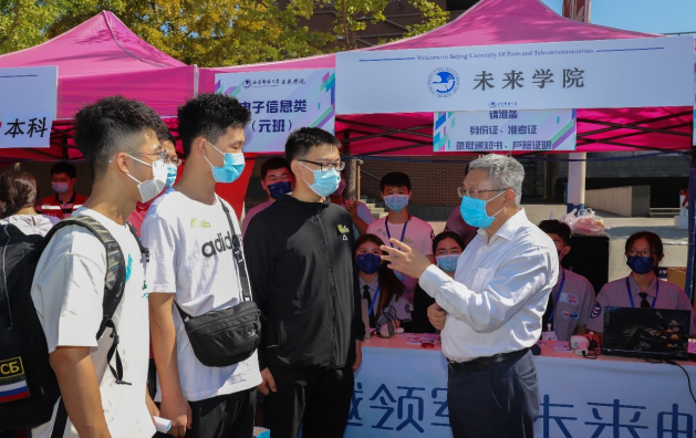期间,学校党委书记吴建伟一行莅临学院迎新现场,关心慰问现场报到同学和志愿者。吴书记对未来学院的学生表达了悉心关怀和殷切期望,同学们都十分喜悦和激动。吴书记表示,未来学院汇聚了北邮最优秀的生源,而“元”意味着开端和第一。吴书记勉励第一届未来学院“元”班学员,要珍惜大学时光,努力学习,创造新的成绩;学校也会为未来学院配备优秀的老师和教学资源,支持努力把大家培养成未来的卓越人才。