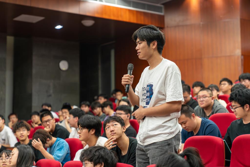 恳谈会伊始,喻院长介绍了未来学院2023级专业分流方案,分析了2022级保研情况,并就科研导师与研究生导师的选择给同学们提供了指导和意见。他鼓励元班同学们积极提升人际沟通、组织协调等全方位综合素质能力,实现全面发展。在随后的互动答疑环节中,同学们踊跃发言,积极探讨现阶段在专业课程学习、科研能力培育等方面所遇到的问题和困惑。三位院长就同学们的问题和建议给予了耐心细致的解答和指导。最后,顾院长立足大模型时代发展趋势与学院课程体系建设,启发同学们深度思考学习的价值与方法,并勉励同学们立足学科前沿明晰学习目标,在服务国家“卡脖子”技术攻关的实践中实现个人价值。
