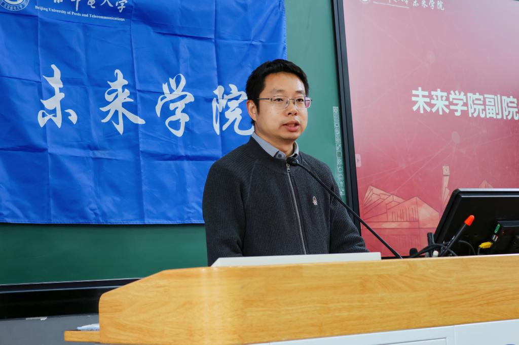 随后,未来学院副院长喻鹏老师代表学院发表致辞,言辞恳切,寄予厚望。喻院长寄语李天宇同学,要坚守“退伍不褪色,换装不换心”的军人本色,将在军营中淬炼的坚韧品格融入后续的学习科研过程,成为学院教育中一张闪耀的青春名片;同时叮嘱王昱杰同学,要充分发挥未来学院工科生的专业优势,在军营中苦练过硬本领,努力成长为懂技术、能打仗、有担当的新时代军人,更要铭记,学院永远是他最坚实的后盾、最温暖的港湾。