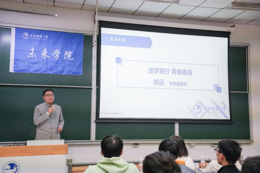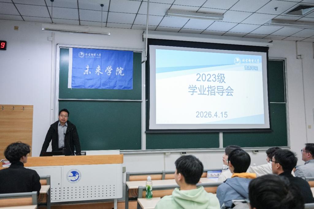 为全面落实“四全育人”工作要求,进一步畅通师生沟通渠道,精准回应学生在学业发展、校园生活等方面的核心需求,助力同学们明确成长方向、筑牢发展根基,4月15日晚上,未来学院在西土城路校区教三楼435教室召开2023级本科生院长恳谈会。未来学院常务副院长姚远,副院长王文华、喻鹏、屈贺如歌,学工办主任张旭伟及全体2023级本科生参加此次活动。活动由2023级本科生辅导员杨星义主持。